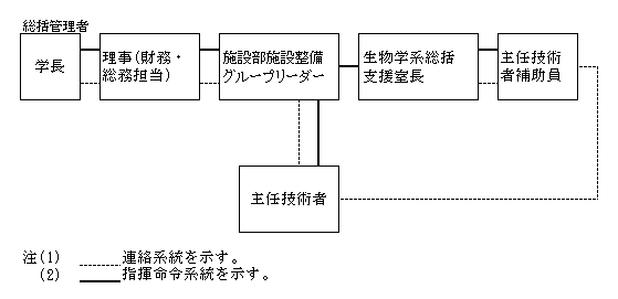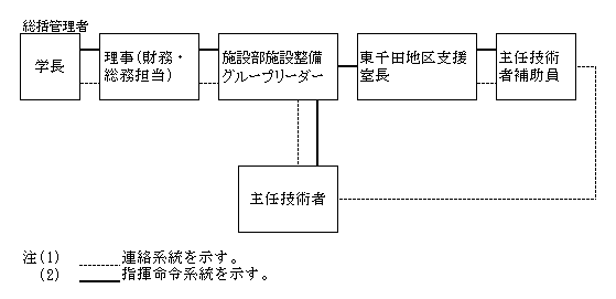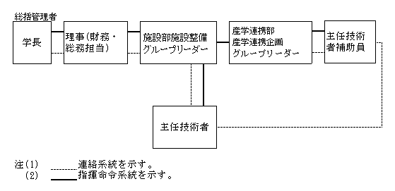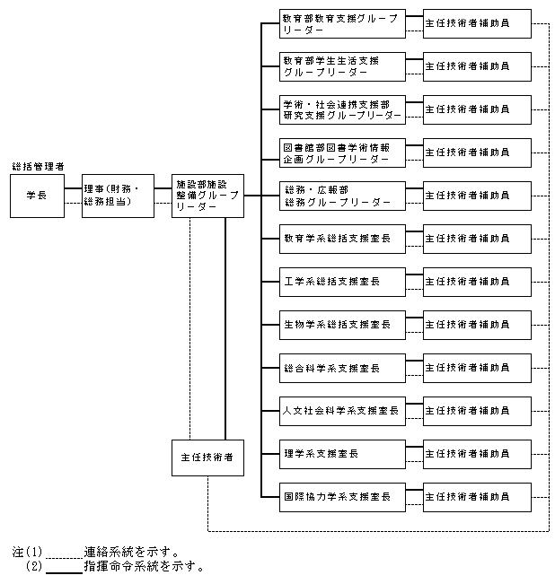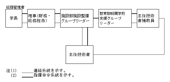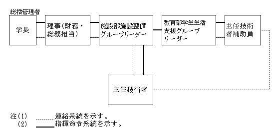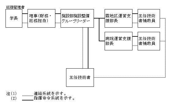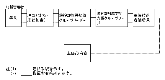 (4) 財務・総務室施設部施設整備グループリーダー(以下「施設整備グループリーダー」という。)は,主任技術者の職務を掌理し,主任技術者を監督する。