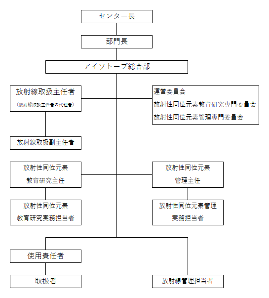第3条 部門における放射性同位元素等の取扱い及びその安全管理に従事する者に関する組織は,別図のとおりとする。