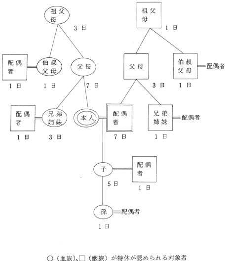 2親等の傍系者(兄弟姉妹) | 3日 | |