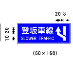 エ 道路に設置する「登坂車線」、「道路の通称名」を表示する案内標識については、道路の形状又は交通の状況により特別の必要がある場合にあっては、図示の寸法の1.5倍又は2倍に、それぞれ拡大することができる。