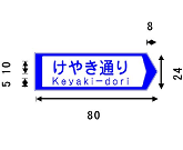 オ 「市町村」、「方面、方向及び距離」、「方面及び距離」、「方面及び方向の予告」、「方面及び方向」、「方面、方向及び道路の通称名の予告」、「方面、方向及び道路の通称名」、及び「著名地点」を表示する案内標識に、それぞれ市町村章、公共施設等の形状等を表す記号を表示する場合の当該記号の大きさは、日本字の大きさの1.7倍以下の大きさとする。