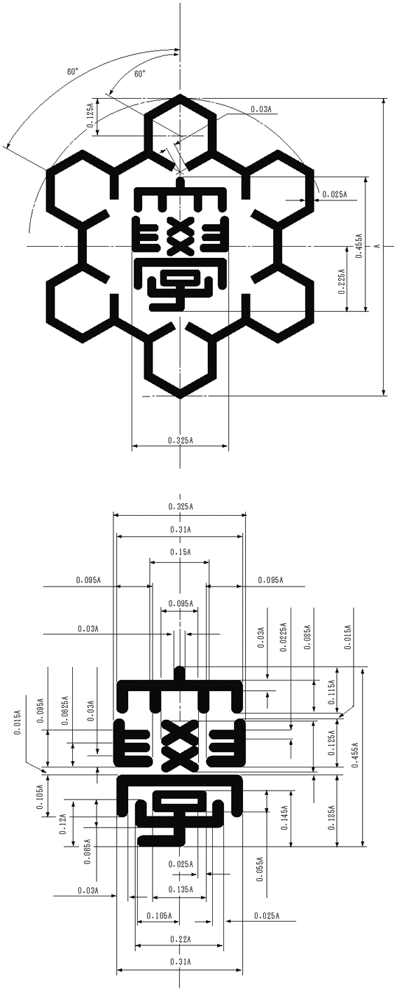 (大学の文字を中央に置き,雪の結晶を外側に意匠したもの。)
