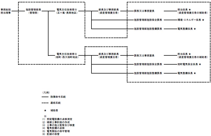 第5条 第4条第1号の規定により,保安業務を総括管理する施設管理部長(以下「管理者」という。)は,電気工作物に係る保安上次に掲げる事項を決定し,又は実施しようとするときは,主任技術者の意見を求めるものとする。