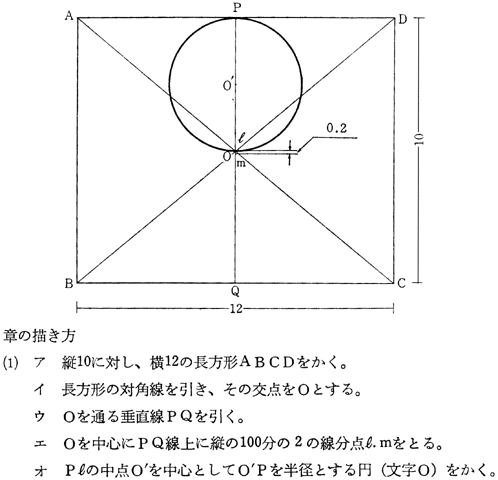 (2) 縦の8分の5、横の2分の1の長方形の中に章を入れそれを中心におく。