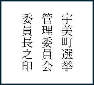 | 宇美町選挙管理委員会之印 | てん書 | 正方形 | 21 | ![]() | 書記長 |