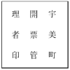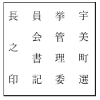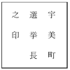 | 宇美町選挙管理委員会委員長之印 | てん書 | 正方形 | 21 | ![]() | 書記長 |